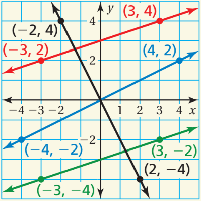 Which lines are parallel? Which lines are perpendicular? (use the color)