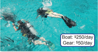 Five friends go scuba diving. They rent a boat for x days and scuba gear for y days. The total spent is $1000.