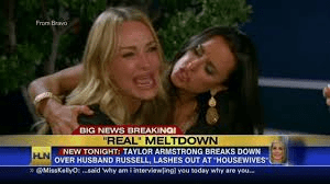 In a popular meme, Real Housewives of Beverly Hills star Taylor Armstrong is crying, pointing, and yelling at what animal?