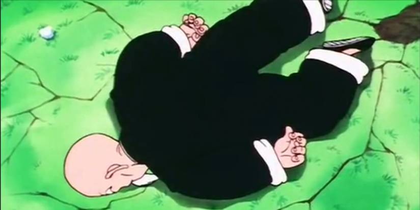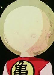 Roshi hypnotizes Man-Wolf and makes him think that Krillins bald head is the Full Moon