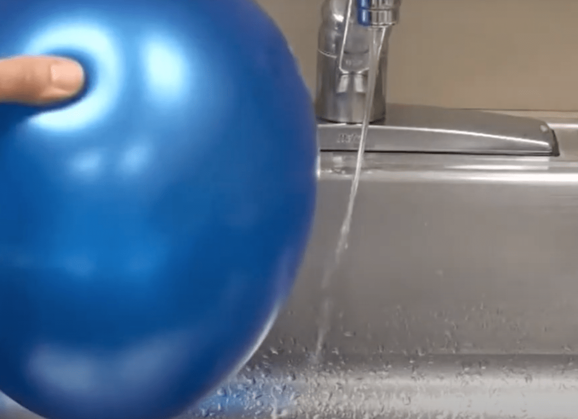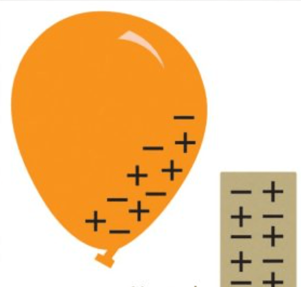 The balloon has been rubbed against a shirt and electrons have accumulated. What will happen when brought near the water?