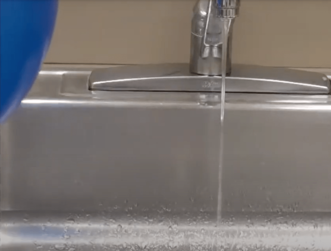 Electrons built up on the balloon creating a negative charge. The electrons pushed the electrons from the water away (same charges repel). This left a positive charge in the water and, thus, an attraction between the balloon and the water.