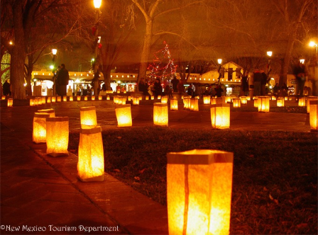 Mexico, farolitos are set along sidewalks, on windowsills, rooftops and outdoor walls as decorations during Christmas.