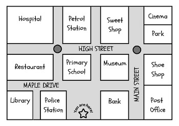 Examples: The park is next to the cinema. The park is across the sweet shop/shoe shop.