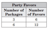 Molly is buying packages of party favors for her birthday party. Using the table as a guide, how many packages will she need to buy 24 favors?
