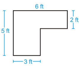 Find the area of the complex figure.  Include units!  (Hint: break the figure into two rectangles.)