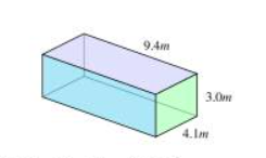 The fish tank has a length of 6 m, a height of 3 meters and a width of 4 meters. Find the volume.