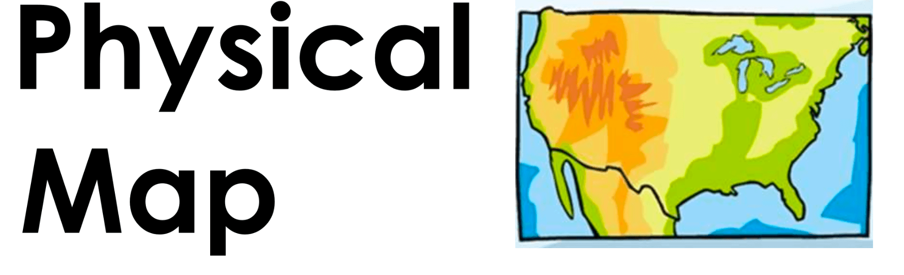 Shows land and physical features such as mountains, lakes, rivers and oceans.