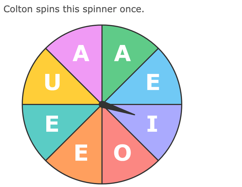 A 4 sided spinner was spun 50 times. #1 was landed on 6 times, #2 was landed on 11 times, #3 was landed on 19 times, #4 was landed on 14 times.