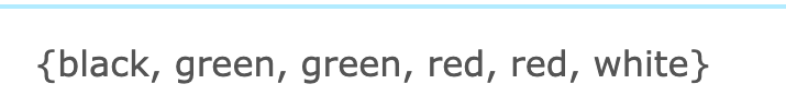 Carter chooses a marble at random from a bag. There is 1 white marble, 2 green marbles, 1 black marble, and 2 red marbles.