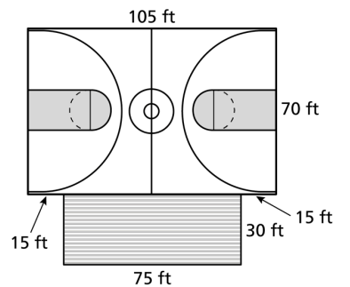 The dimensions of a basketball court are shown below. A fence is to be built around the court and bleachers. The fence costs $8.99 per foot. How much will it cost to install the fence?