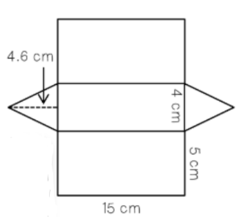 Area of a triangle with a base of 5 mm and a height of 4 mm.