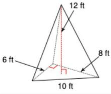 The volume of a box with a base of 3 feet, a height of 4 feet, and a depth of 5 feet.