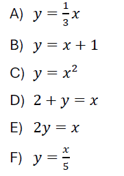 Which of the following are equations of proportional relationships? Select all the correct answers.