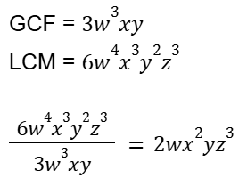 If all the variables are prime factors, what is the quotient of the LCM and GCF of