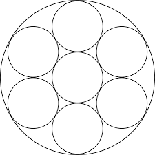 Notice that the large circle contains seven smaller circles inside. If each small circle has a radius of 5 cm, calculate the area of the large circle.