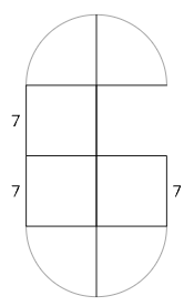 If the diameter of each circle is 10 cm and the height of the rectangle is is 18 cm.