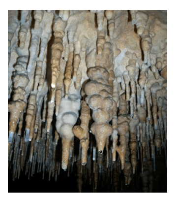 Stalactites like these are formed when Rainwater dissolves calcium carbonate from the limestone in the soil. This is which step in the weathering, erosion, deposition process?