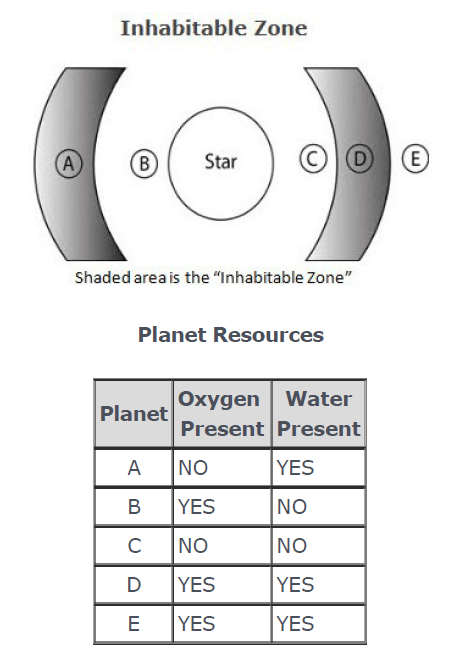 According to the diagram, this is the reason Planet E is not inhabitable.