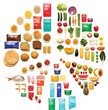 Which group contains items like Tofu, Chickpeas, Steak, fish and eggs?