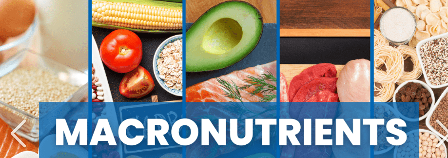 Name the three macronutrients the body needs in large amounts.