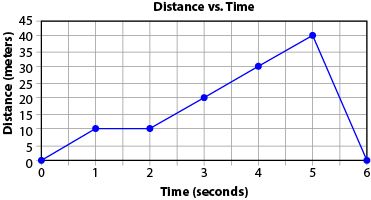 What is the motion of the ball from 2-5 seconds? Does the ball return to its origin?
