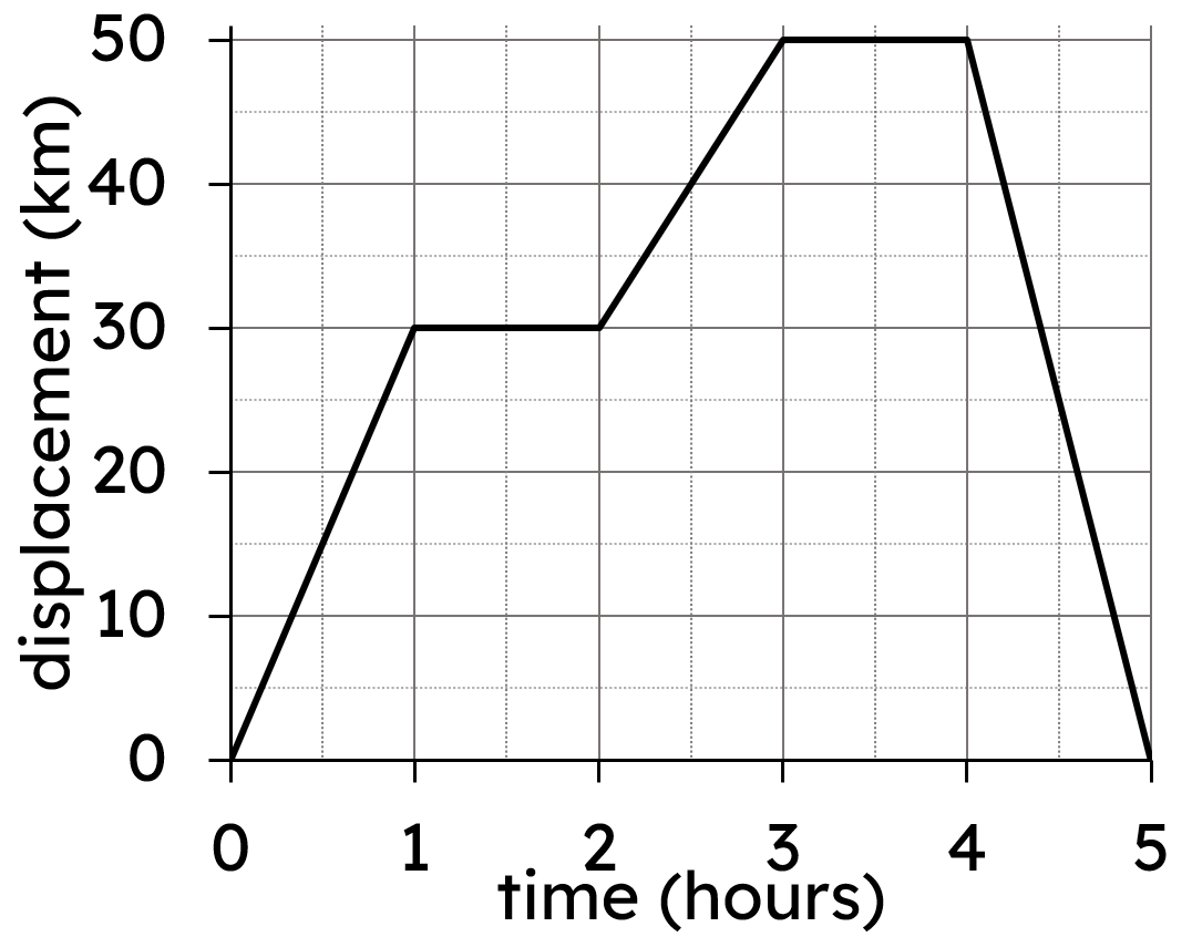 Describe the motion from 0-1 hour and 4-5 hour, during which hour is there a greater speed?