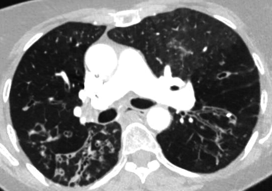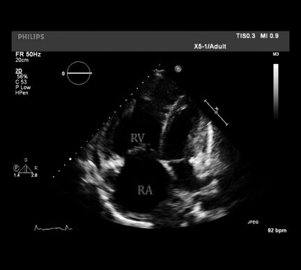A 35-year-old man is evaluated for exertional dyspnea and a sensation of pounding in the neck that has progressed over the last year. Blood pressure is 150/60 mm Hg, and pulse rate is 60/min.
