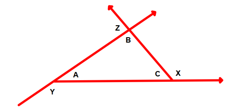 The sum of these two interior angles of a triangle are congruent with the exterior angle that is opposite the two interior angles.