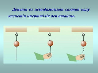 Денеге басқа денелер әрекет етпеген кезде қалыптасқан жылдамдығын сақтау құбылысы инерция деп аталады.