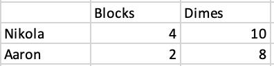 Based on comparative advantages, who should produce blocks and dimes? (all calculations needed!)
