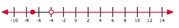 −4x − 4 < 12 or −5x ≥ 35