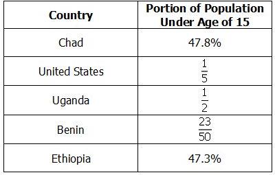 List the countries in order from least to greatest according to the portion of the population under age 15.