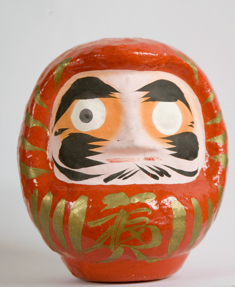 This doll is now known and used as a symbol for good luck and perseverance in Japan, often gifted to someone who is entering a new part of their life, but its origin comes from the story of a Buddhist monk by the same name who meditated without closing his eyes for so long that eventually his arms and legs fell off.