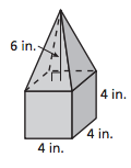 Find the volume of the composite solid (This composite solid is made up of a pyramid and cube). Round your answer to the nearest tenth if necessary.