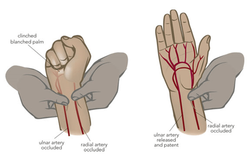 Allen test:  to measure ulnar patency