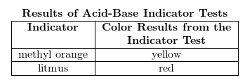 According to Reference Table M, what is the color of the indicator methyl orange in a solution that has a pH of 2?