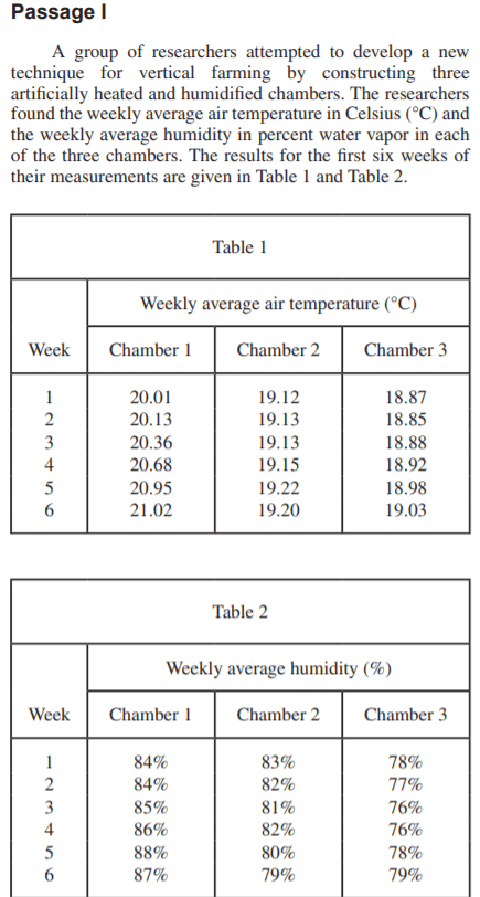Suppose the rate of growth of crops in each of the vertical farming chambers is determined by either weekly average air temperature, weekly average humidity, or both. If the growth rate in Chamber 2 greatly exceeds the growth rate of Chambers 1 and 3, which of the following conclusions would be justified?
