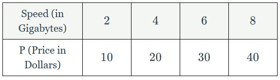 An internet provider sells internet packages based on low monthly rates. The price for the internet service depends on the speed of the internet connection. The chart above indicates the prices of the various internet packages. Which equation represents the prices of these internet packages?