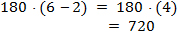 2. 720/ The sum of the measures of the interior angles of a polygon with n sides is 180 . (n – 2) A hexagon has six sides. Therefore, substitute 6 for n into the formula and calculate.![]()