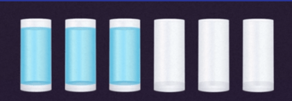 Hay seis vasos frente a ti, acomodados como se muestra en la imagen. Los primeros tres están llenos y los últimos tres están vacíos. Tocando sólo un vaso, como puedes hacerle para que estén acomodados: LLENO - VACÍO - LLENO - VACÍO - LLENO - VACÍO.