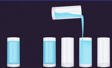 Sólo toca el segundo vaso y vierte el contenido en el quinto vaso. Solo tocas un vaso.