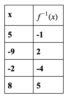 Find the inverse of the following set {(4,5), (-9,12), (-3, -7), (9, -2)}.