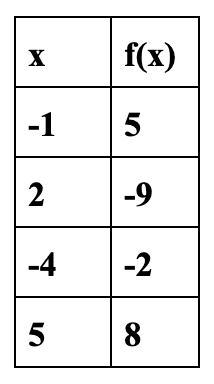 What is {(5,4), (12, -9), (-7, -3), (-2, 9)}.