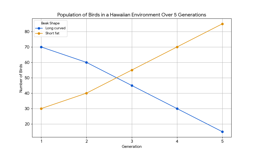Over time, Hawaii started to make more plants that produce nuts and seeds. Why did the short and fat beaks increase more than the long, curved beaks?