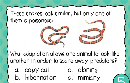 a. copy cat// b. hibernation// c. cloning// d. mimicry