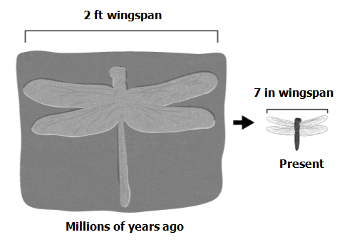 Comparing the fossil dragonfly to the modern one, what assumptions can be made about the dragonfly?