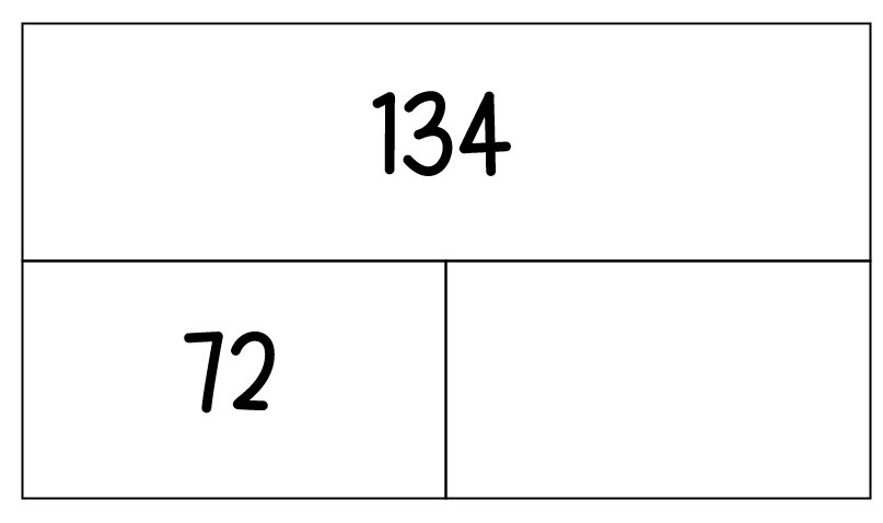 134 - 62 = 72