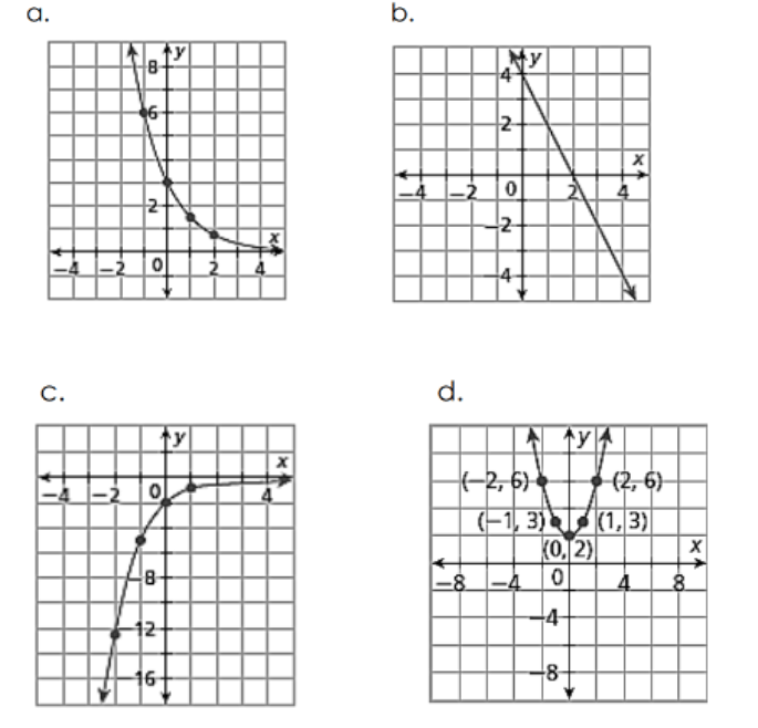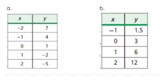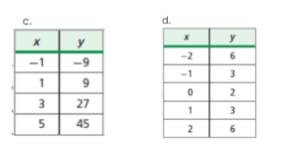 Which table represents Exponential -- and is it growth or decay ? (answer both)