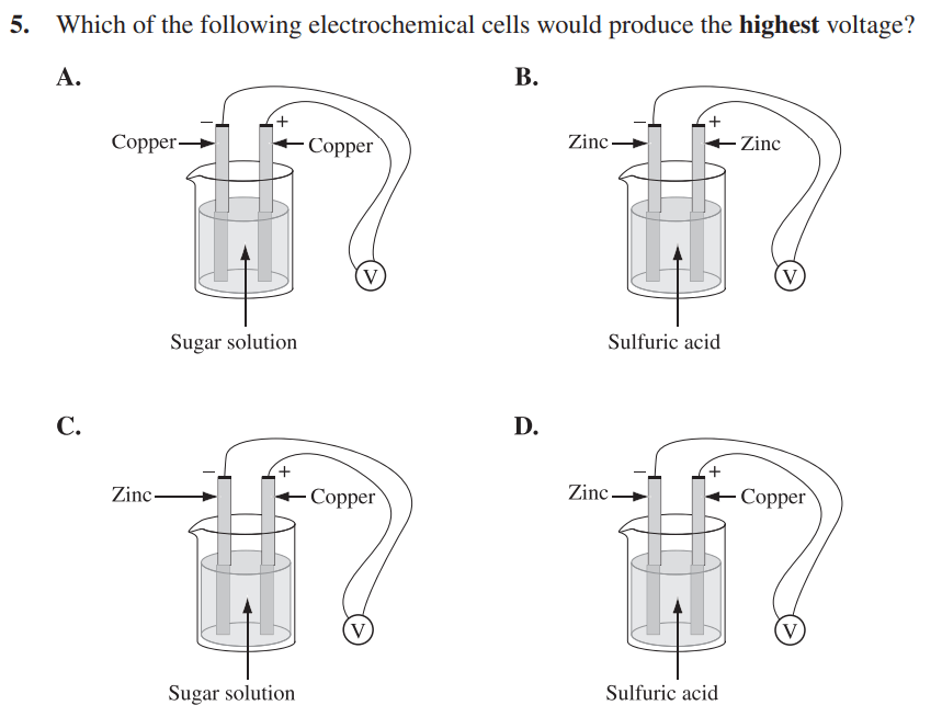 D. Using two different metals is key. Sulfuric acid will conduct extremely well (sugar water won't!)